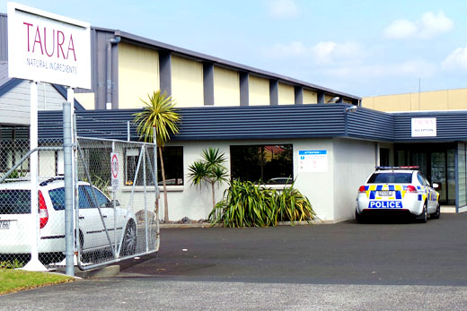 Police outside Taura Natural Ingredients in Owens Place, Mount Maunganui.