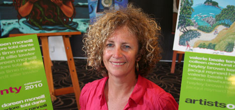 Sandy Williams, organiser of the Artists of Plenty fundraising calendar, with some of the art work featured in the 2010 edition.