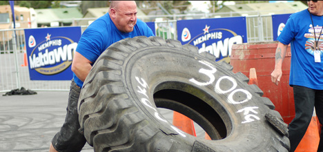 This weekend's 3.2 tonne truck is relatively light for Mick, who once pulled a 15 tonne truck for 25 metres and, in New South Wales this year, held 125 kilograms in each hand for 50 metres.