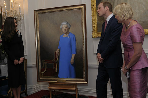 Kate smiling for the camera at the unveiling of a potrait of the Queen. Photos: Woolf Crown Copyright.