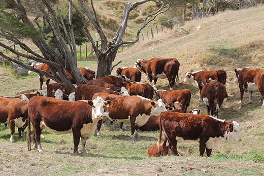 Herefords are a hardy breed able to withstand tough conditions, as evidenced by the way they're coping with this summer's dry in the Waikato.