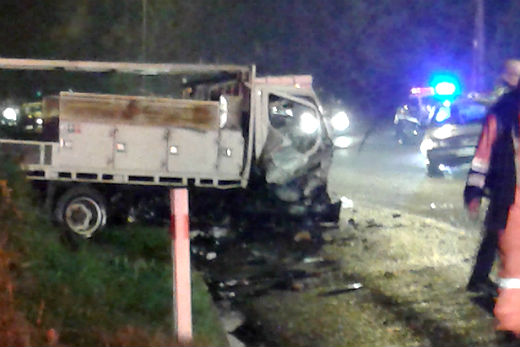 A Toyota Corolla was written off after it crashed with a truck on State Highway 29, near Gargan Road, overnight.