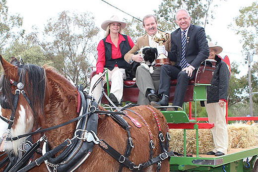 Joe McGrath on Tuesday in York W.A with race caller Bryan Martin OAM and carriage rider. Photo: Supplied.