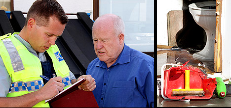 Roger Miller talks with police.