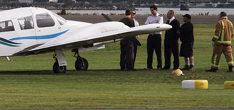 The landing of this plane at Tauranga Airport at about 4.20pm on Friday led to a mass emergency service callout. It is a trainer plane from Bay Flight International Limited. Two students were observed speaking with emergency service staff and airport officials next to it after it landed.