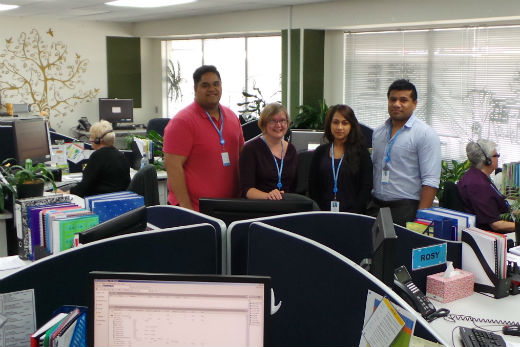 Call centre night crew Tamihana Hamiora-Reweti, Salla Saarinen, Rosy Kumari and Aifai Esera.