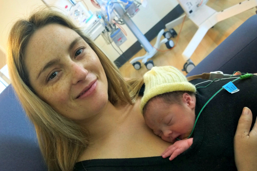 Rhonda Symes with her newborn son in Waikato Hospital's Newborn Intensive Care Unit. Her boy was the Waikato's second-born baby for 2015. Photo: Waikato DHB