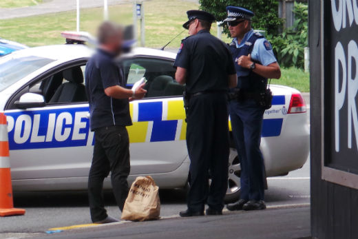 Bay of Plenty Coast, Fire Service area commander Murray Binning and Tauranga Police Senior Sergeant Carl Purcell question the man exposed to the potassium cyanide. Photos: Luke Balvert.