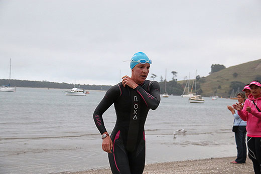 Organisers say the lead competitors are all out of the water and moving onto the bike leg, with an expected finish time of about 10am.