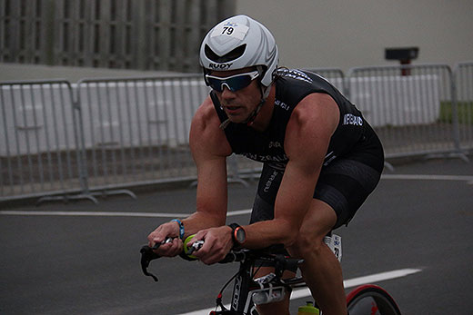 Stewart Montgomery, from Mount Maunganui, starting the bike leg of the race.