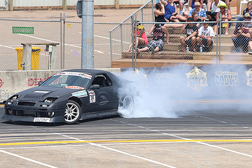 Black rings in the carpark, evidence of the drifting taking place.