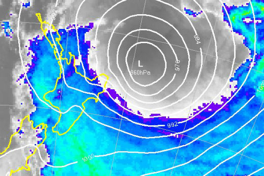 MetService reports the system is moving south and should lie about 180 km east of East Cape by around 1pm today, and just northeast of the Chatham Islands around 1pm on Tuesday.