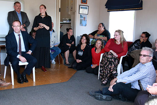 In a last minute reshuffle, Andrew met with Merivale community members in the morning after a funeral service was being held for Merivale's respected kuia Margaret Mankelow.