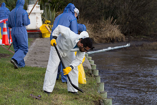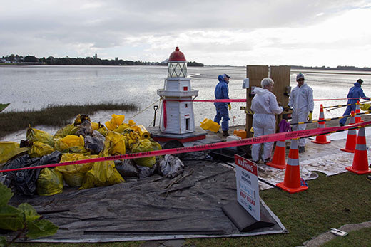 There are other smaller areas of oil at Rat Island, most of which is trapped in vegetation and is being removed as quickly as possible. A sucker truck is continuing to remove oil from around the Bridge Marina.